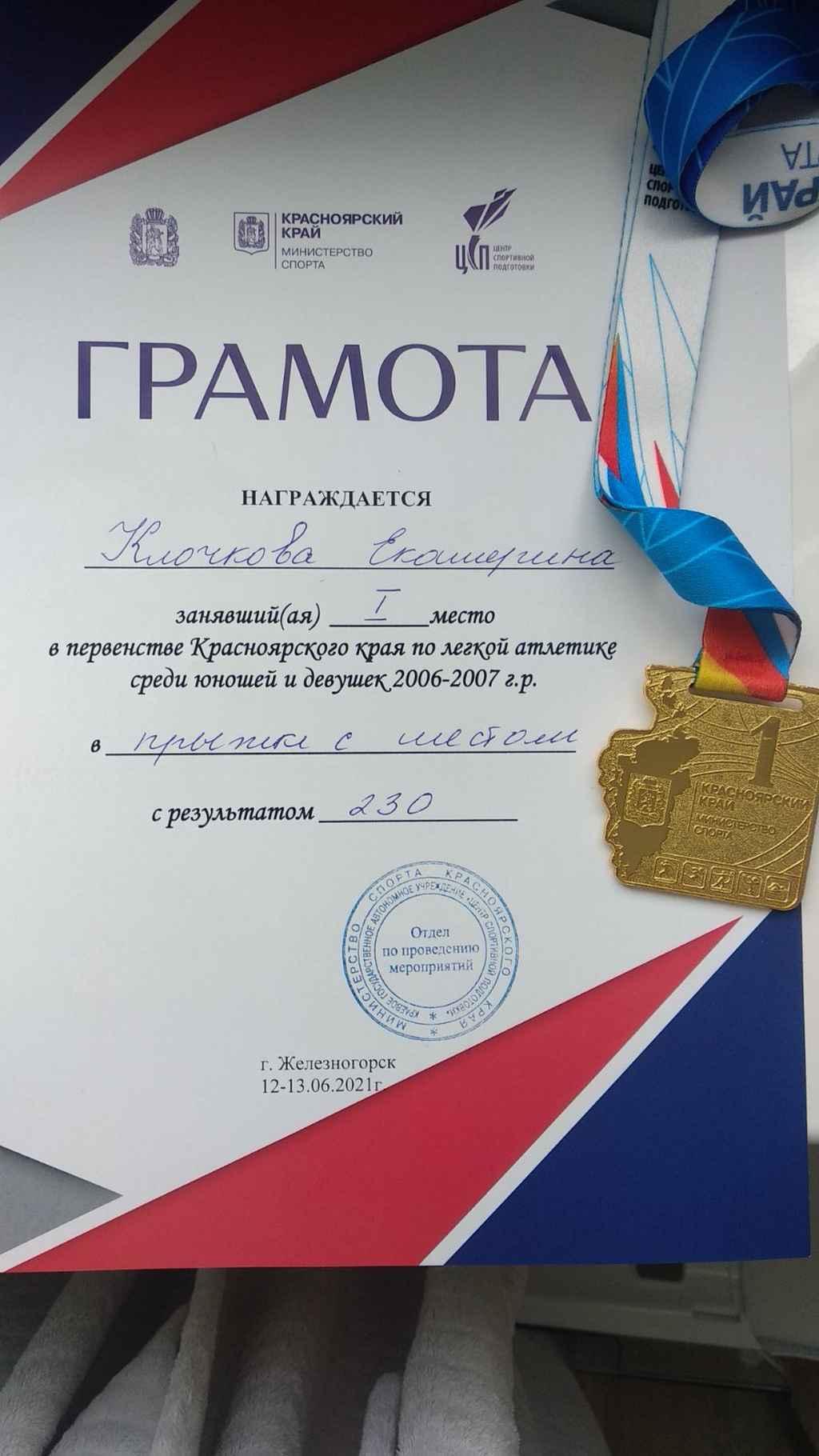 СПОРТ. Екатерина Клочкова заняла 1 место в прыжках с шестом на первенстве Красноярского края по легкой атлетике.