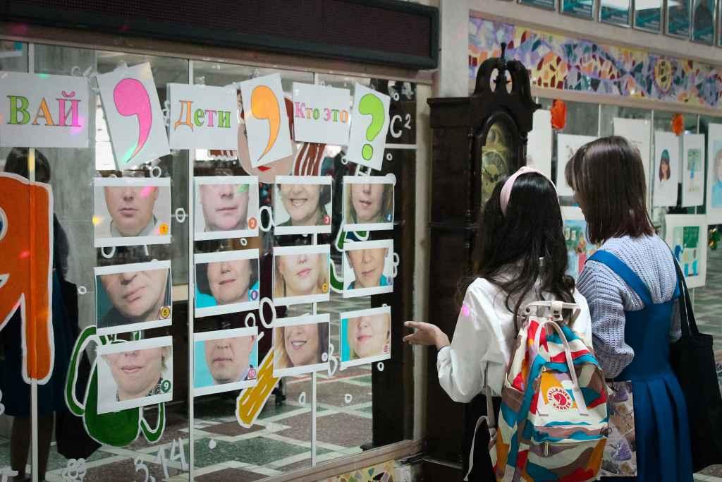 На переменах лицеисты участвовали в интересном интерактиве "Вай, дети, кто это?", в котором нужно было угадать учителя по его улыбке. Еще на первом этаже творческие ученики 1-5 классов подготовили милую выставку рисунков "Учительница первая моя".