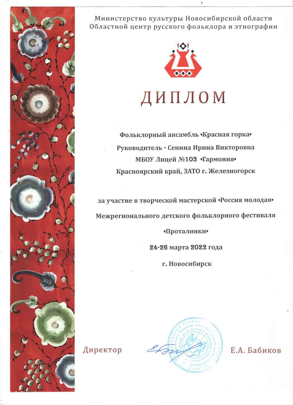 31.03.2022В дни весенних каникул фольклорный ансамбль «Красная Горка» с успехом выступил на XXX Межрегиональном детском фольклорном фестивале «Проталинки», в котором приняли участие фольклорные коллективы Сибири и Урала.