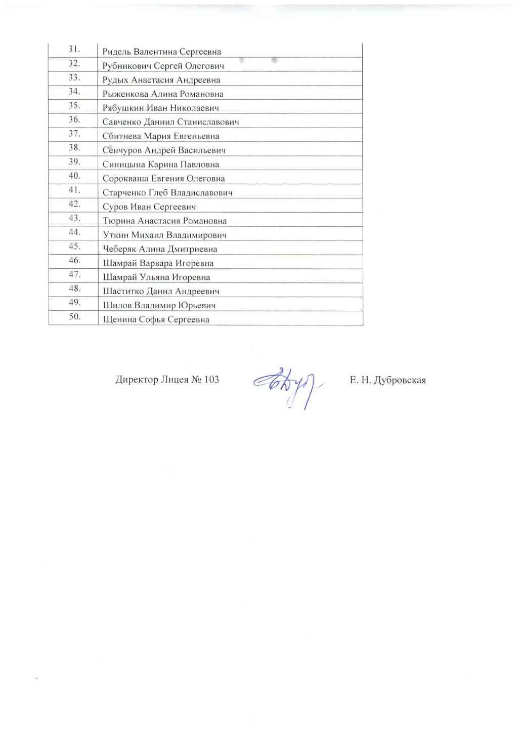 Списки зачисленных: