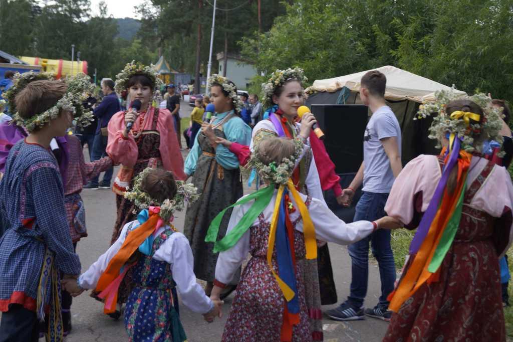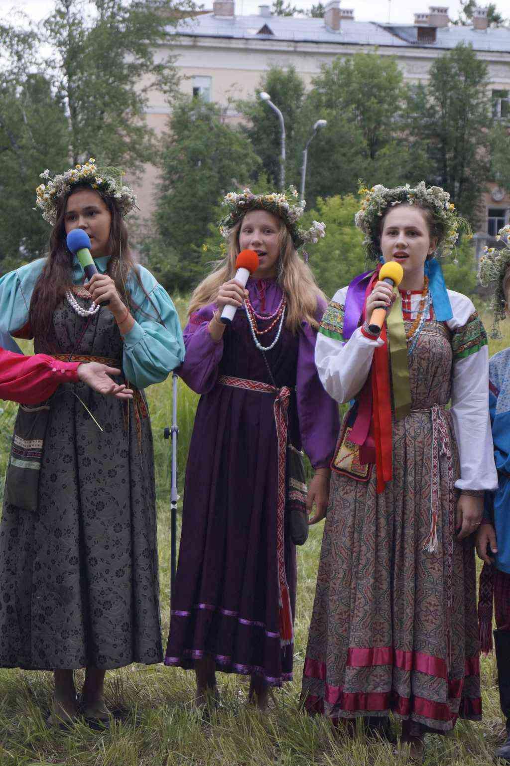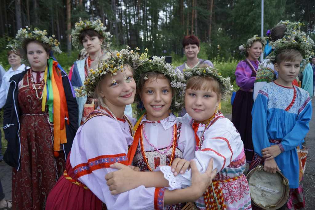 Ансамбль дважды исполнил песенно - обрядовую игровую программу «Зеленые Святки», в которой пронзительные обрядовые песни о страшной завораживающей купальской ночи переходили в обряд кумления с кукушечкой – травяной птицей, в которую превратилась древняя богиня жизни – Жива. Плясовые песни и кадрили чередовались с рассказами о том, как надо росу собрать, да умыться ей, чтобы красивой быть, как от ведьм, да русалок уберечься купальской ночью. С удовольствием все присутствующие поиграли в традиционные поцелуйные игры, никого не оставили равнодушными обрядовые игры с русалками. Прохладная погода не позволила в полной мере насладиться купальским действием, но - хороводы поводили, в Александровскую березу поиграли, в молодецких забавах поучаствовали, на косарей посмотрели, фаер – шоу полюбовалась, и венки, сплетенные утром, в озеро кинули.