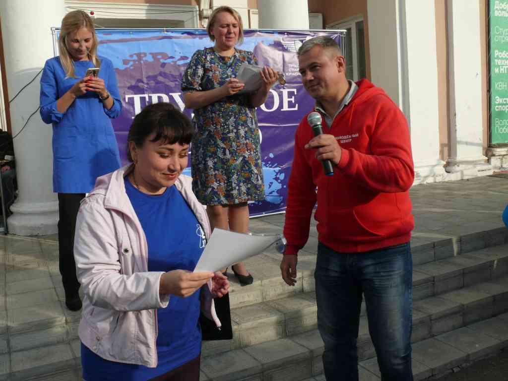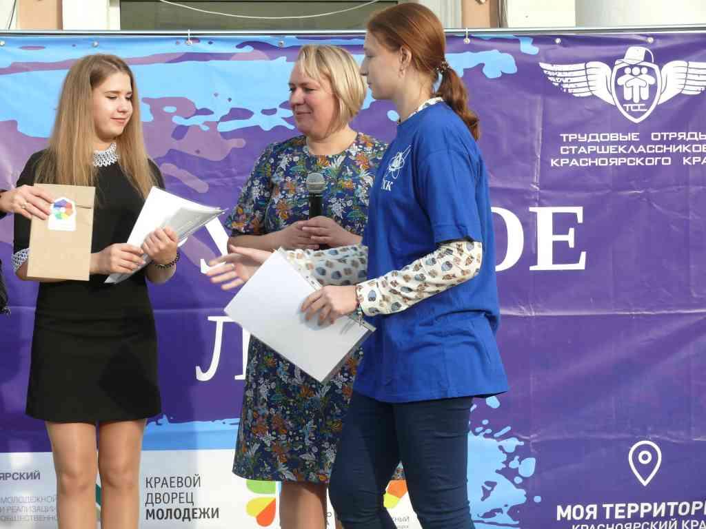 А награждение происходило на площадке перед зданием Молодежного центра. Перед этим торжественным действом к присутствующим обратился глава ЗАТО г. Железногорск Вадим Викторович Медведев. А затем заслуженные награды получили руководители ТОС, командиры и бойцы. В Лицее №103 это Елена Анатольевна Чумичева, Алексей Дмитриевич Савочкин и ученица 10 класса Настя Носкова.
