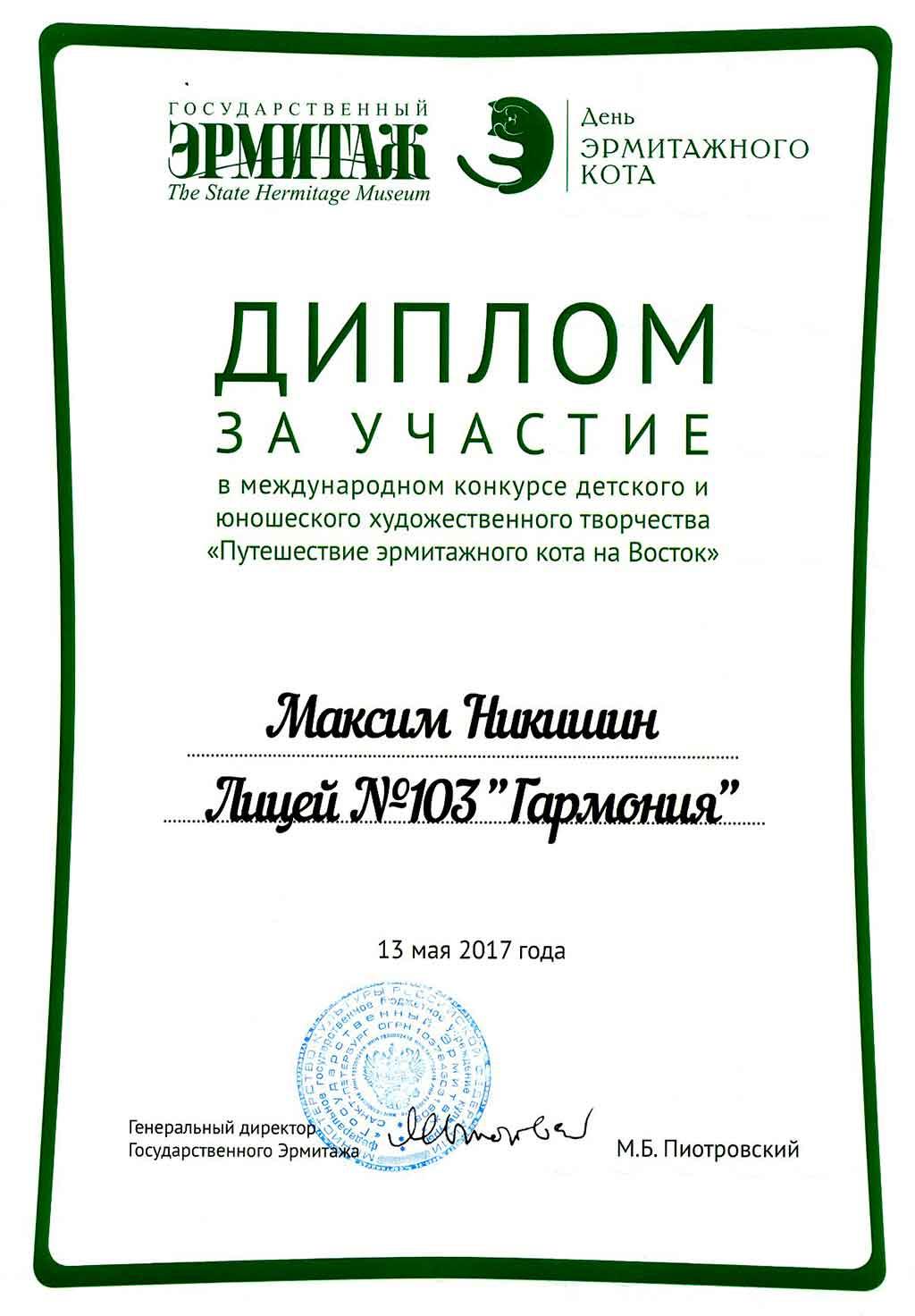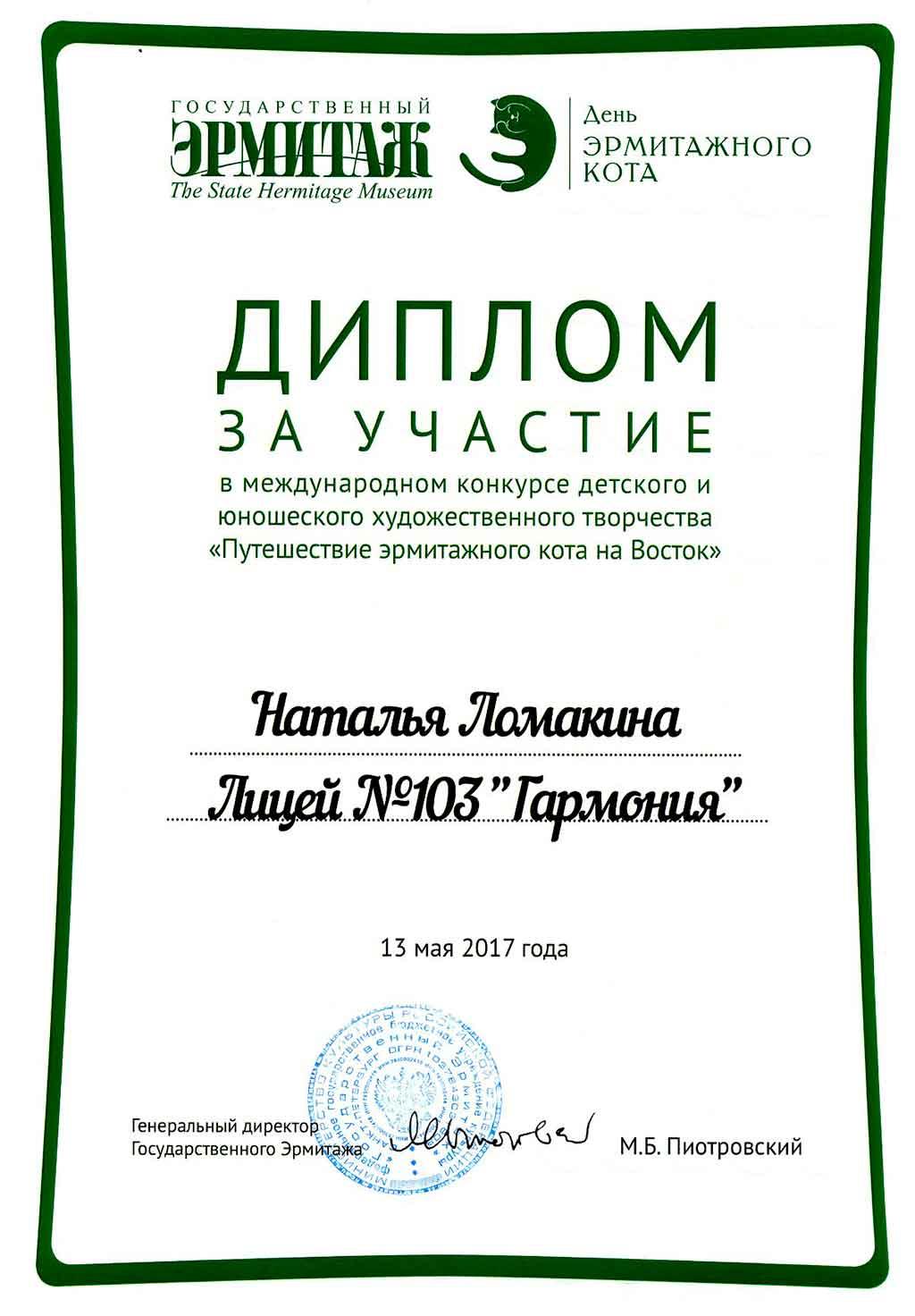 В этом году участниками международного конкурс детского и юношеского художественного творчества «День эрмитажного кота» стали и учащиеся нашего Лицея. Работы ребят были отмечены дипломами от Государственного Эрмитажа.