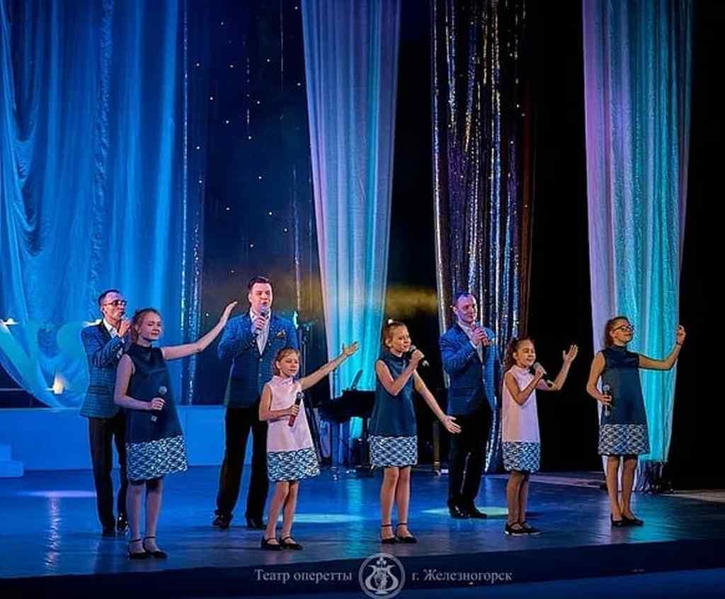 Воспитанницы Вокальной студии «Эхо» на сцене в городском ДК.