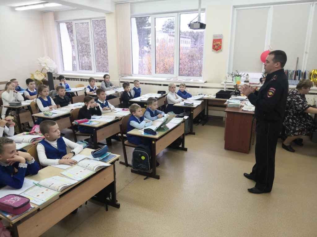 На встречу к лицеистам пришел сотрудник ГИБДД Сергеев Евгений Андреевич - госинспектор БДД ОГИБДД УМВД России по ЗАТО г. Железногорск. Евгений Андреевич рассказал о правилах безопасного перехода проезжей части, о необходимости светоотражающих элементов на одежде при нахождении на улице, а также рассказал о правилах безопасного поведения при близко идущем транспорте.