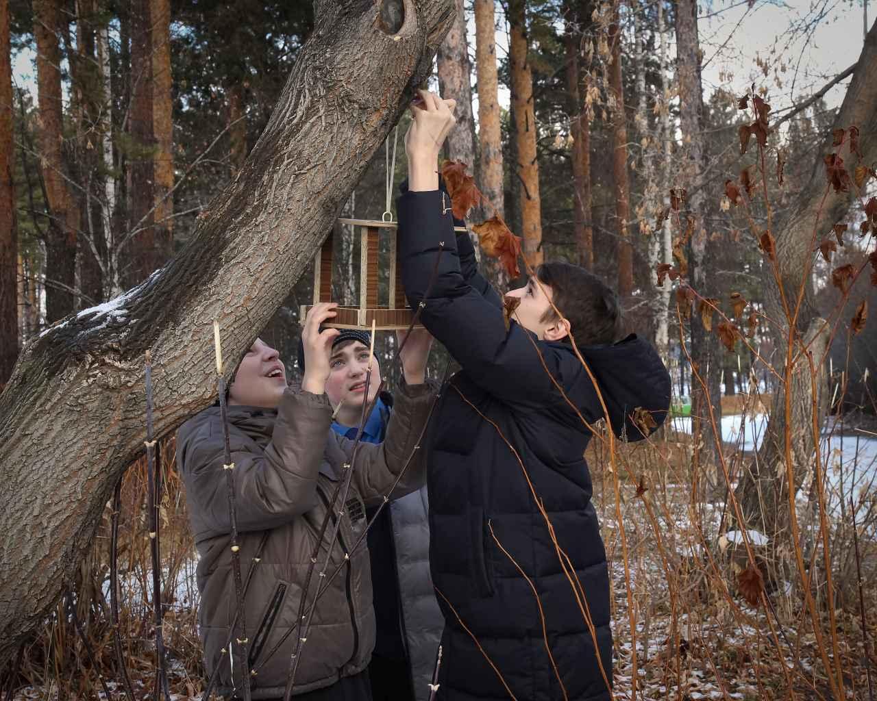 б) Сегодня, 15 ноября, наши ученики 7 "М" класса на уроке труда развешивали кормушки на территории школы, а также наполняли их вкусной и полезной крупой. Молодцы!