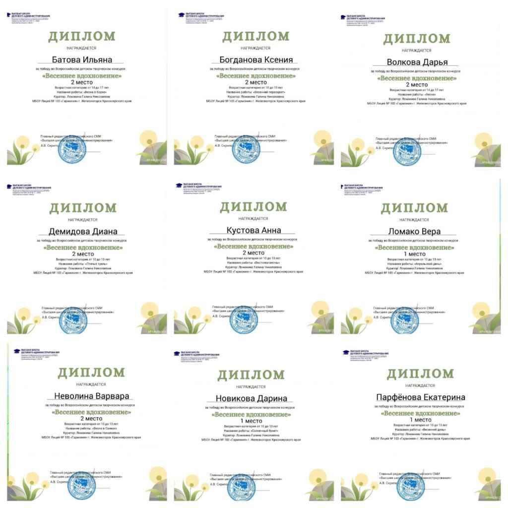 1. Пришли результаты всероссийского конкурса рисунков "Весеннее вдохновение"!