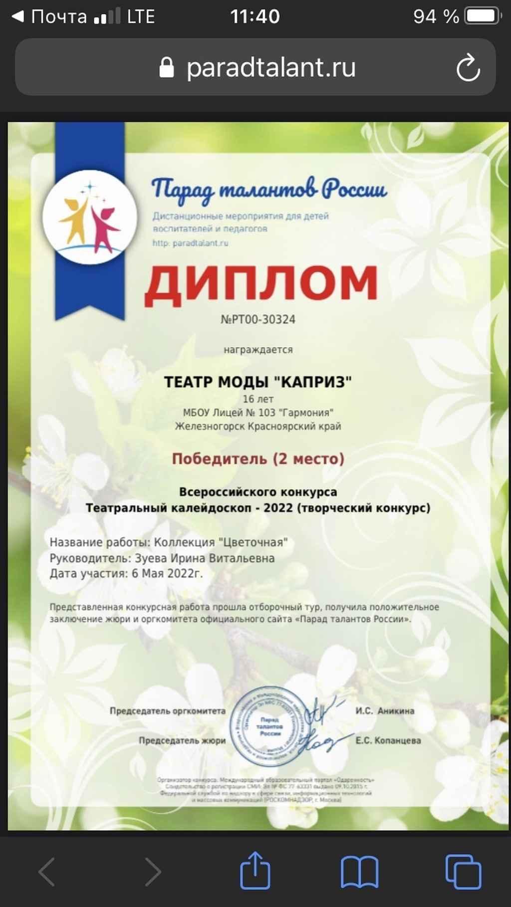 3. Театр моды "Каприз" под руководством Ирины Витальевны Зуевой принял участие во всероссийском конкурсе Театральный калейдоскоп 2022 и занял II место! Так держать!