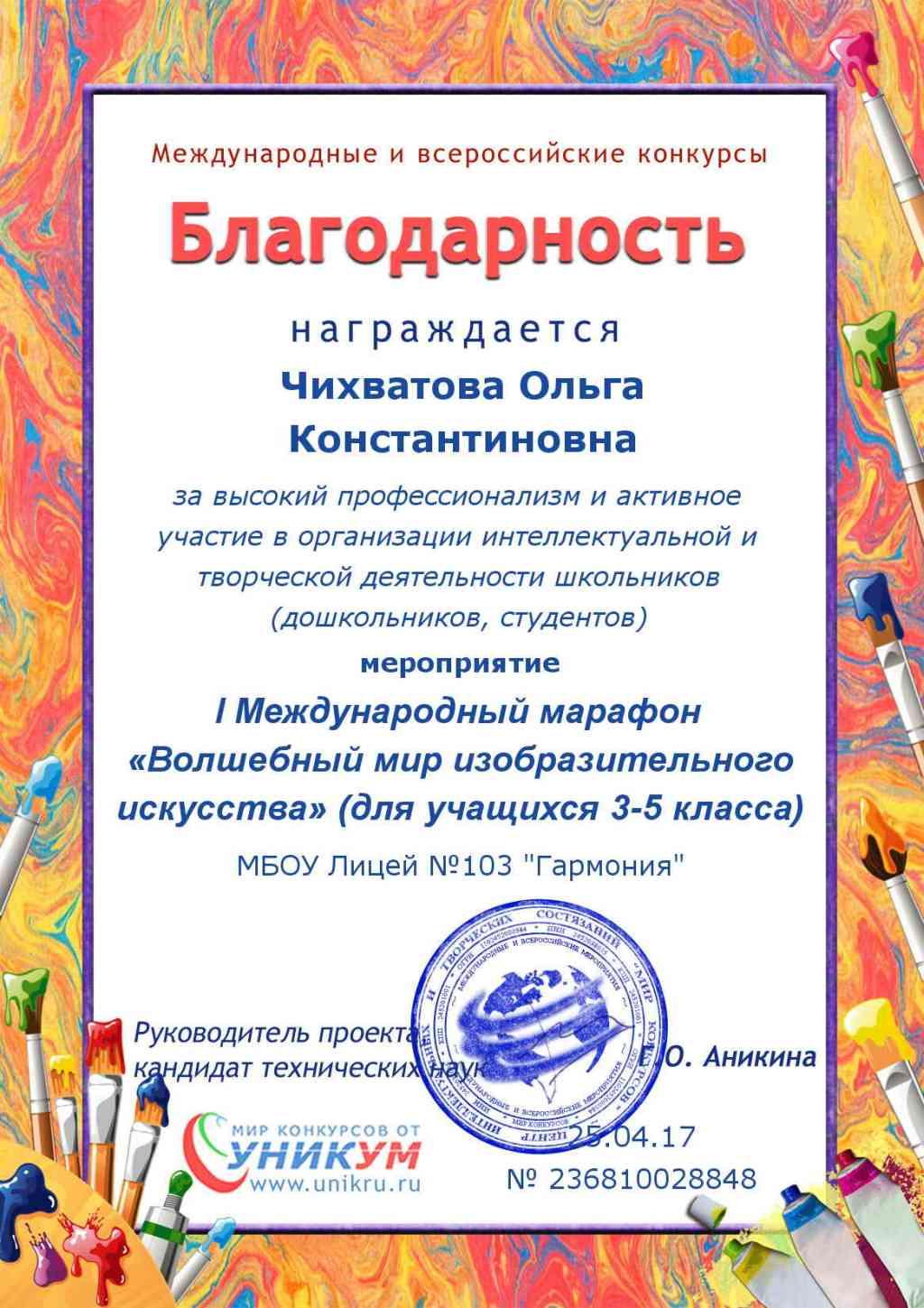 03.05.2017С 11 по 18 апреля 2017 года проходил I Международный марафон по изобразительному искусству