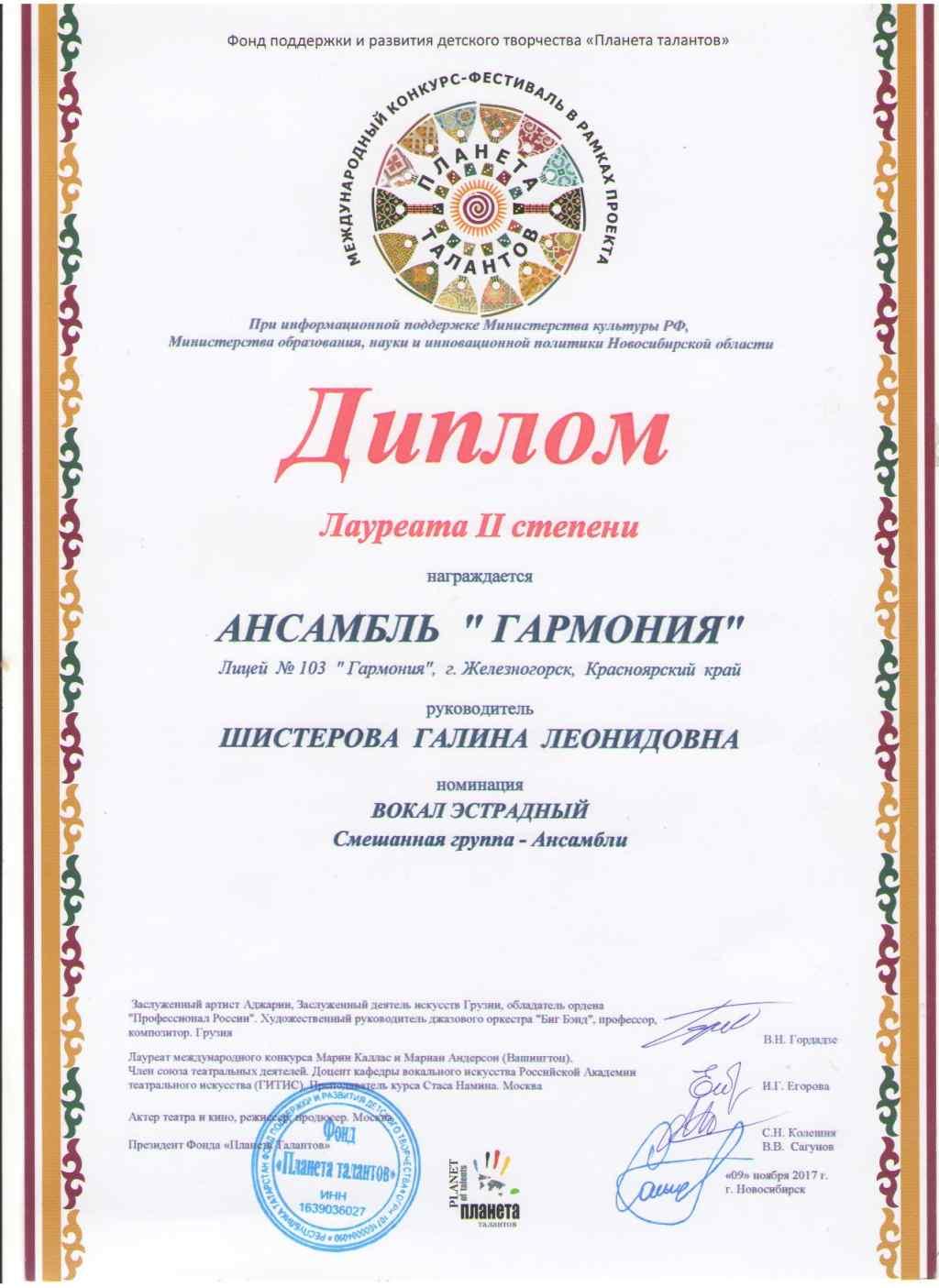 22.11.2017Эстрадно-вокальный ансамбль "Гармония" под руководством Шистеровой Галины Леонидовны вернулся с конкурса-фестиваля