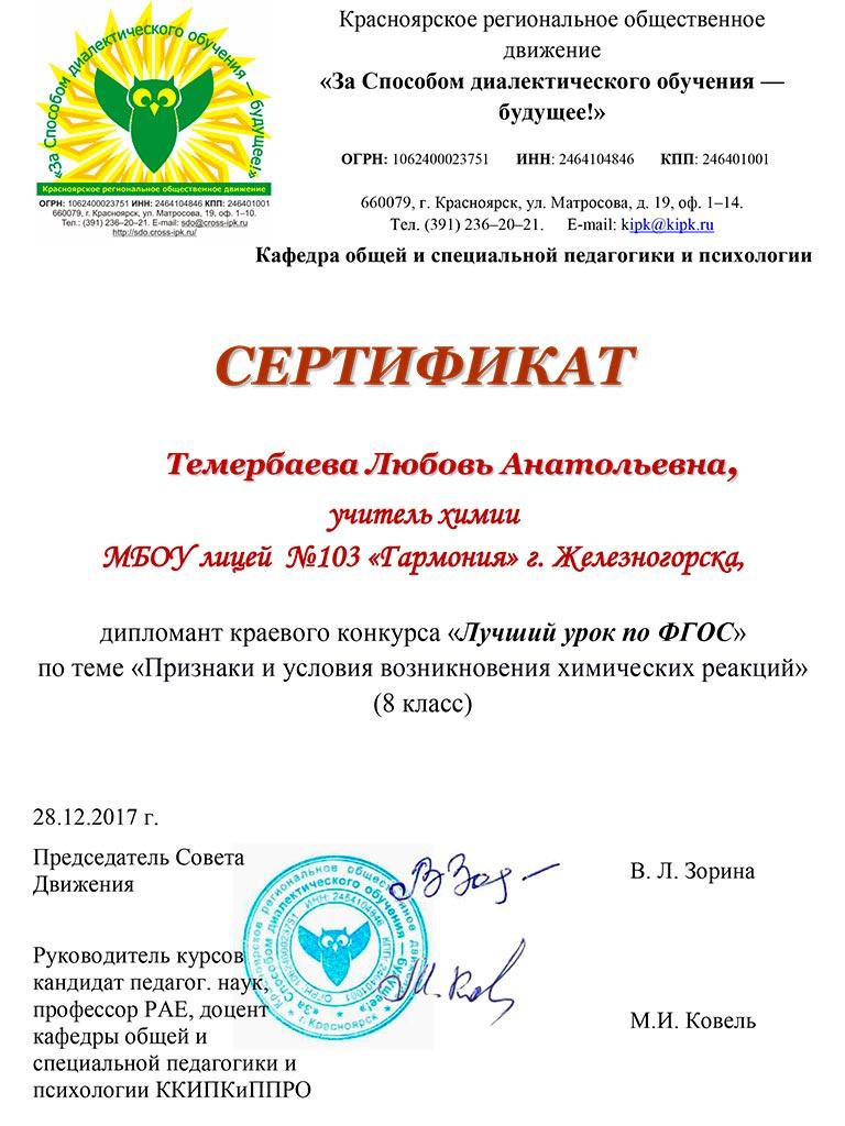 Центр онлайн-обучения «Фоксфорд» и Педагогическое сообщество «УРОК.РФ» поздравляют Темербаеву Любовь Анатольевну с успешным участием во Всероссийском конкурсе!