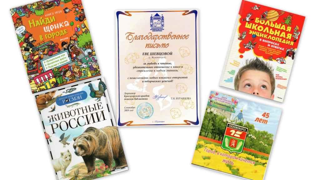 На центральной сцене Дома культуры состоялось награждение лучших читателей, Ева получила благодарственное письмо и интересные книги в подарок.
