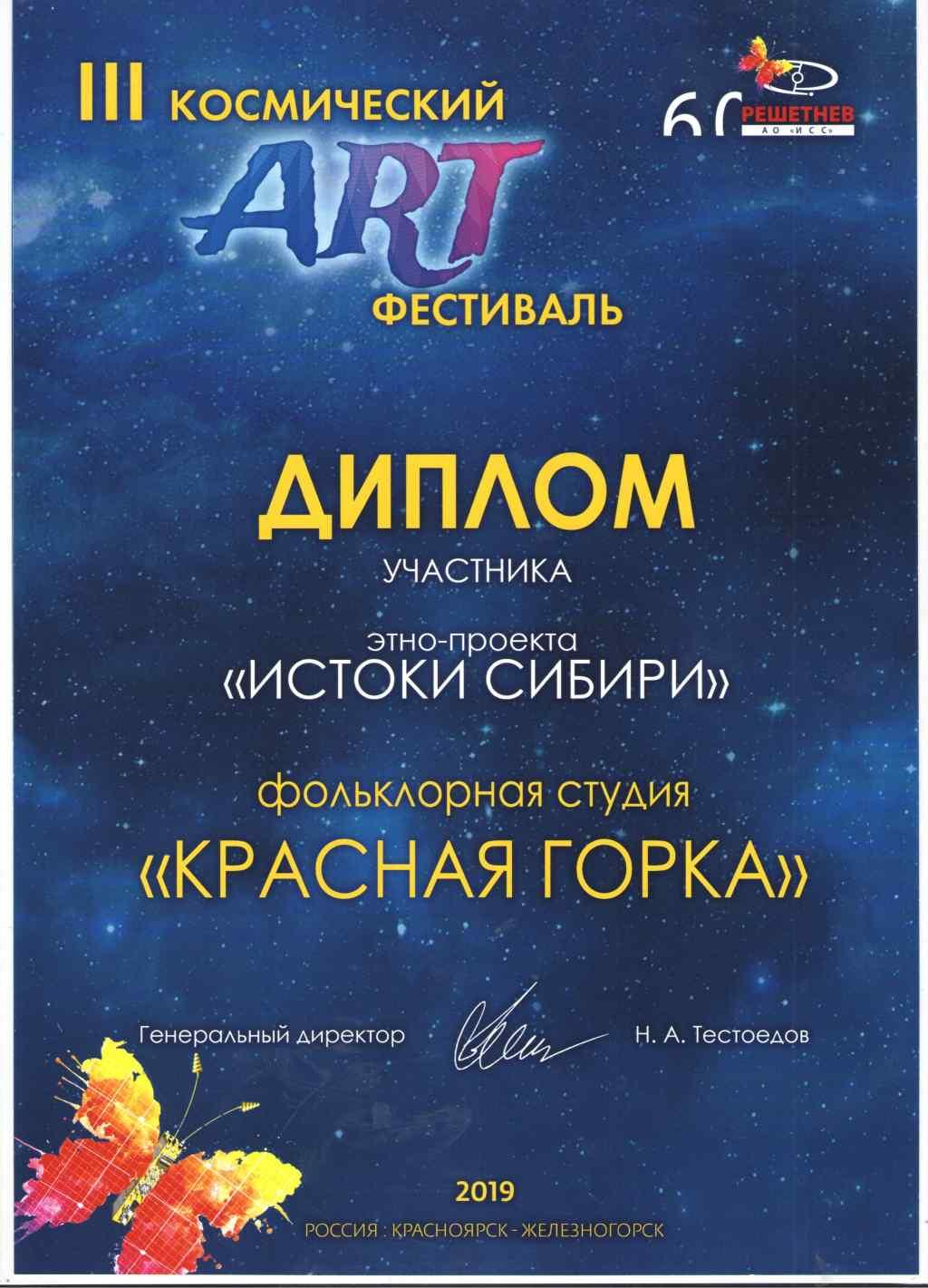 прошедшем в рамках открытия III Космического Арт - фестиваля во Дворце культуры, в честь Дня космонавтики и 60-летия АО «Информационные спутниковые системы» имени академика М.Ф. Решетнёва»