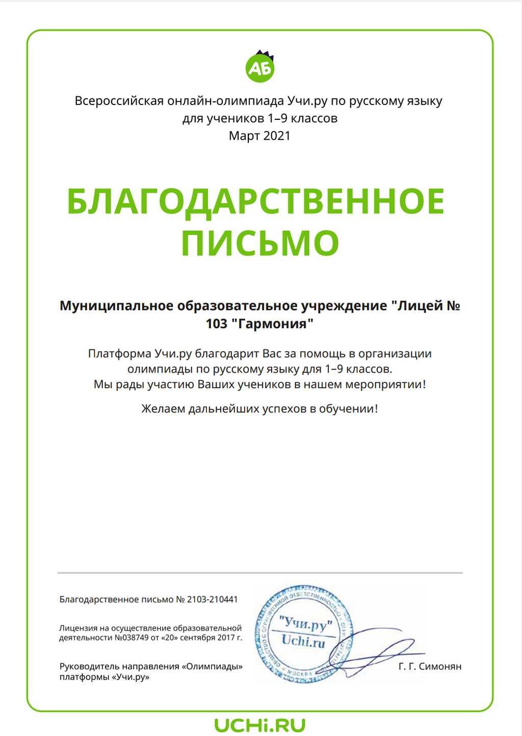 © Муниципальное бюджетное общеобразовательное учреждение Лицей №103 «Гармония», 2005-2026 г